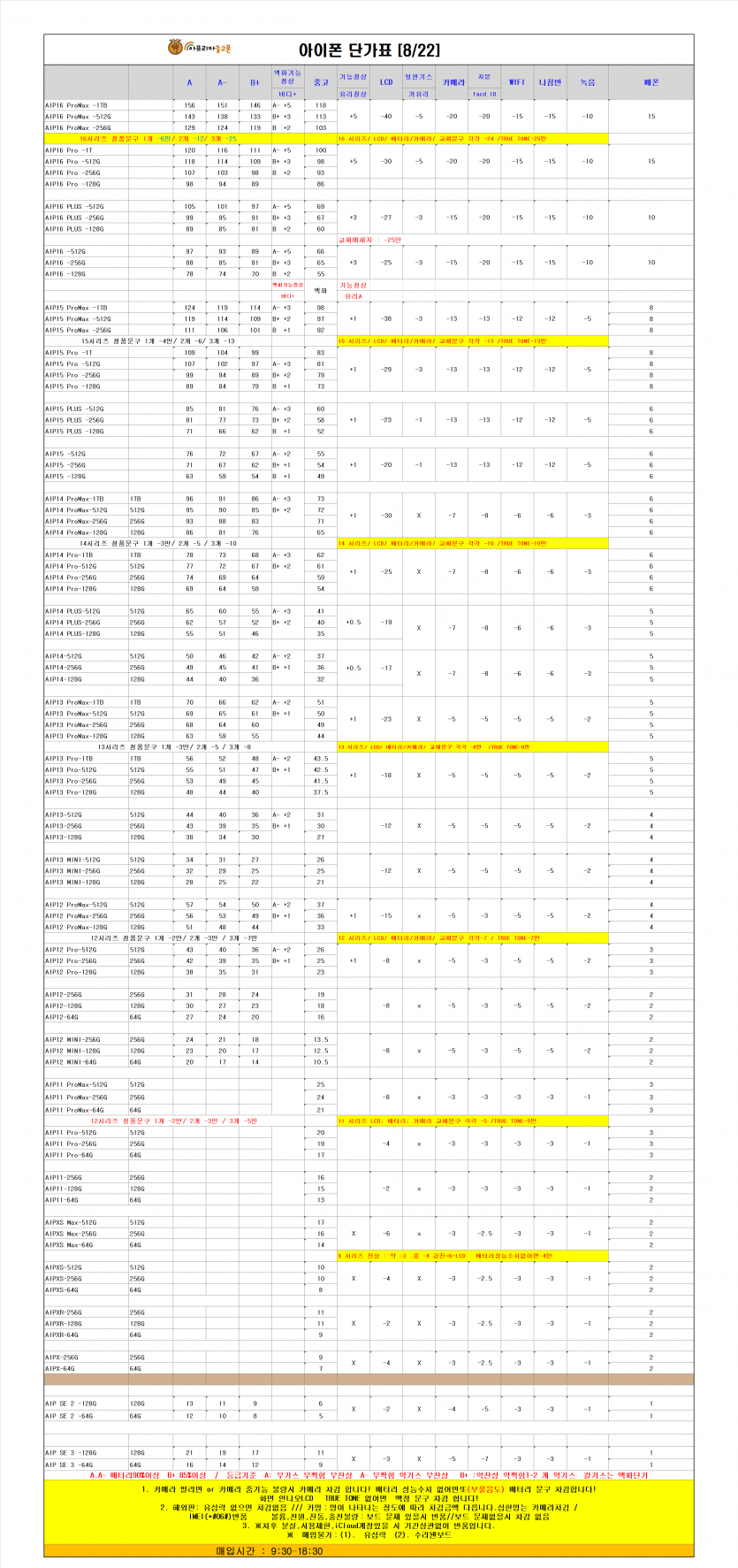 매장소식 2025년 8월 22일 중고폰 매입 단가표 작성일25.08.22 12:29 | 조회수 2,285 2025년 8월 22일 중고폰 매입 단가표 이전글2025년 8월 26일 중고폰 매입 단가표 다음글2025년 8월 21일 중고폰 매입 단가표 목록