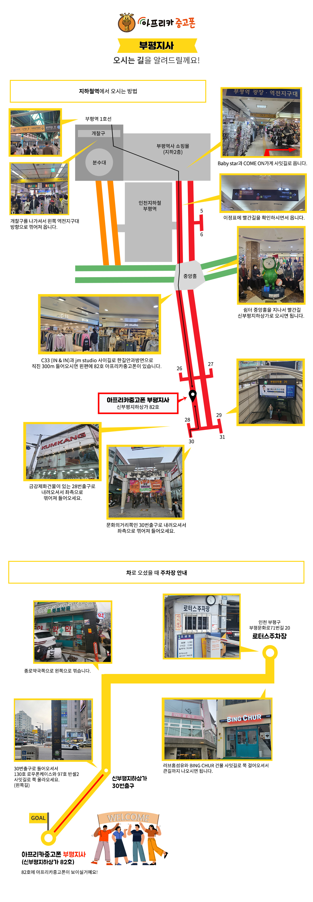 - 로터스주차장(인천 부평구 부평문화로71번길 20) 에 주차가능합니다. (주차비용 : 30분 1000원 60분 2000원)
