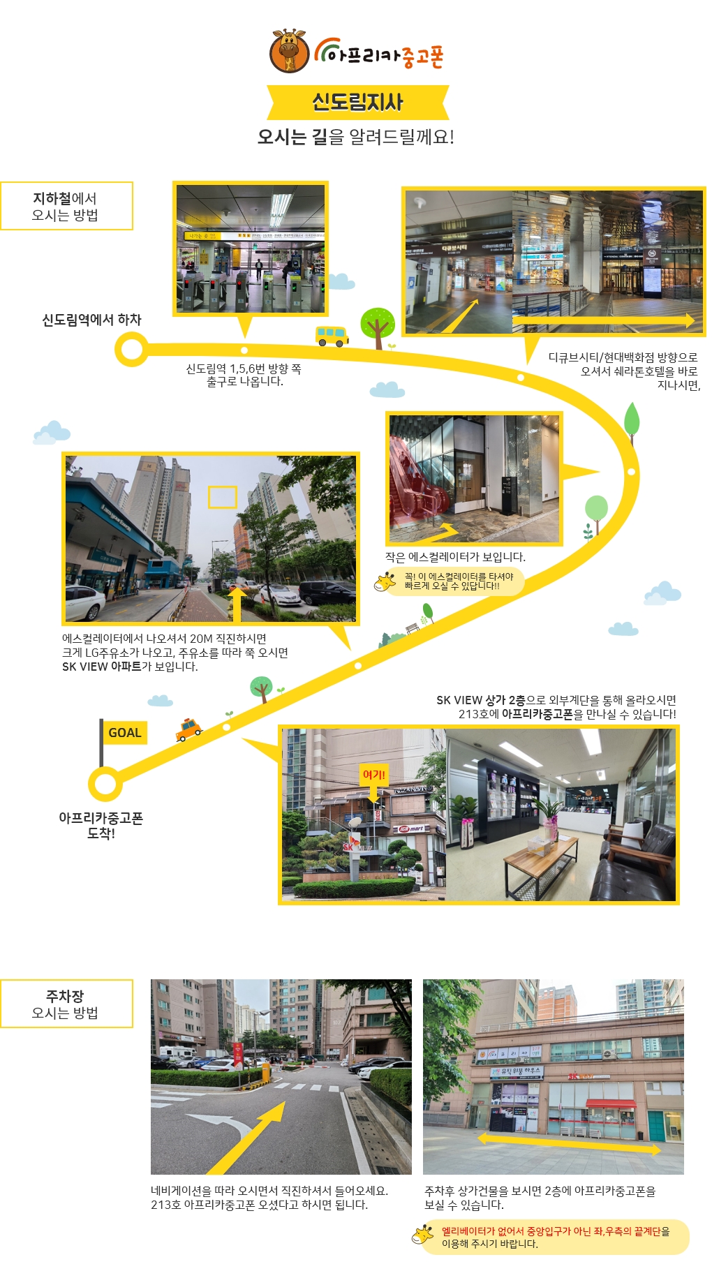 아프리카중고폰 신도림지사 070-4680-3537 서울 구로구 경인로 638 213호 070-4680-3537 SK뷰 건물에 주차하시면 됩니다. 들어오실때 아프리카중고폰 방문했다고 말씀하시면 됩니다. 영업시간 평일 9:30 ~ 18:30 휴무일 토요일, 일요일, 공휴일 안녕하세요. 아프리카중고폰 신도림지사입니다. 매장 오시는길 목록 매장에 한마디! 0 목록 등록된 한마디가 없습니다.